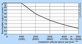 Параметры коррекции для повышенной температуры окр.среды и высоты установки Если Сетевой и моторный модули работают при температуре окр. среды > 40 °C (104 °F) и высоте установки > 1000 м (3282 фута), к рассмотрению долхны быть приняты обе характеристики понижения мощности: для выходной мощности и выходного тока. Пример: Моторный блок должен работать при температуре окр.среды 55 °C (131 °F) (60% допустимый ток) и высоте установки 3000 м (9845 футов) (75% допустимый выходной ток). Допустимый выходной ток в этом случае 100 x (0.60 x 0.75) = 45%.
