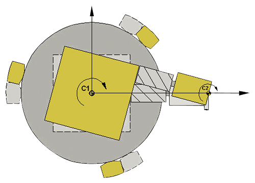 Сверлильные и фрезерные обработки на поверхностях детали, которые не лежат в плоскостях координат станка, могут удобно выполняться с поддержкой наклонной обработки. Положение наклонной поверхности в пространстве может быть определено через вращение системы координат.