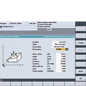 Результаты измерения могут быть считаны в программе обработки детали как системе координат станка, так и в системе координат детали. Отклонение измерительного щупа можно проверить через опрос переменной и вывод на интерфейс PLC и установить реакции на это в программе обработки детали. Расширенная функциональность (к примеру, осевое измерение, обработка до 4 пусковых событий и циклическое измерение ) предлагается с опцией "измерение ступень 2" (опция M32).