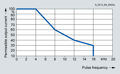 2) Примечание: корреляция между макс. выходной частотой, частотой модуляции и снижением тока, см. Описание системы.