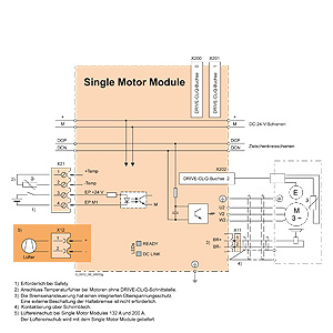 Одиночные модули двигателя взаимодействуют с блоком контроля CU320 или SIMOTION D по интерфейсу DRIVE-CLiQ.