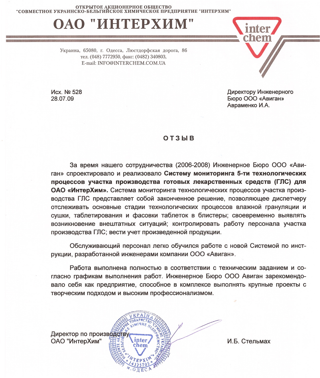 Инженерное Бюро ООО Авиган на объекте ЗАО Интерхим.