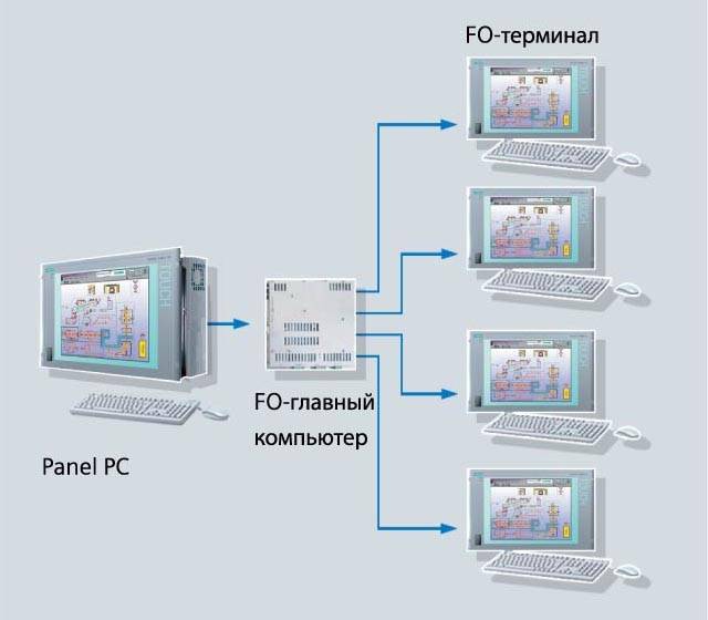Многопользовательская система с Panel PC - до 5 станций оператора на базе HMI FO Link