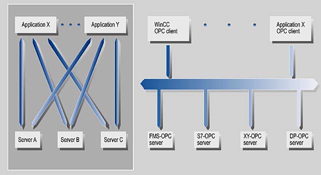Базовым принципом OPC является организация связи между OPC клиентом и OPC сервером через стандартный открытый интерфейс, позволяющий производить обмен данными между изделиями различных производителей. Кроме того, возможна организация обмена данными с уже существующими OPC-совместимыми приложениями Windows (Microsoft Office 97, системами человеко-машинного интерфейса и т.д.).