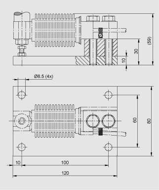 ЧертежПлита основания с защитой от перегрузки для весоизмерительных ячеек SIWAREX R серии BB 10 ... 200 кг, размеры | ||||||||||
