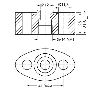 The 7MF9408-2C. oval flange for pressure transmitters for absolute pressure and differential pressure has a ½‑14 NPT female thread and is designed for max. operating pressure 400 bar.