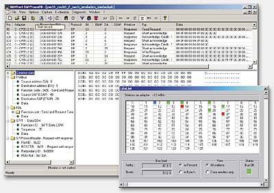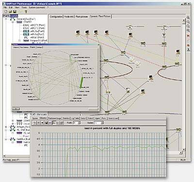 ФункцииBANYnet EthernetСтруктурный менеджер используется для конфигурации сетевой структуры. Все информация сохраняется в структурных данных. Мастер импорта/экспорта функций позволяет обмениваться данными с другими программами. Из структурных данных автоматически генерится файл справки. Это означает, что после создания конфигурации сети создается справка, в которой содержится подробное описание о созданной структуре. Таблицы содержат детальную информацию о свойствах шинных узлов. Таким образом, каждому узлу можно назначить свое подробное описание. Диагностический менеджер опрашивает систему посредством SNMP-совместимых сетевых узлов (такие как, коммутаторы, ПК) и пользователь получает всю информацию о сконфигурированных узлах. Загруженность шины и индивидуальное состояние портов может отображаться как в графическом виде, так и текстовом. Также генерится список всех ошибок, которые произошли в сети Ethernet. Набор статических функций позволяют получать индивидуальную информацию об имеющихся в сети коммутаторах (посылаемая длина пакета, тип ошибки и т.д.). Также возможна настройка параметров модулей OSM/ESM, такие как IP адреса, конфигурация портов или обновление операционной системы. Мастер анализа шины Диагностический менеджер предоставляет специальную информацию о шине и назначенных шинных узлах. Используя редактор событий, можно просматривать время, количество активных соединений узлов на шине и информация о том, какие узлы являются мастерами, а какие-слейвы. Также есть возможность считывать специальные параметры шины (скорость, время отклика, доступные резервы). Записанные фреймы распределяются в зависимости от их типа (такие как, DP, FDL, DPV1 или DPV2) и отображаются в статистическом списке. Мастер анализа шины позволяет записывать, архивировать, перемещаться по событиям, которые произошли на шине. Поддерживается скорость шины от 9.6 kBaud до 12 MBaud, при чем определение скорости происходи автоматически. Данные записываются в линейный или циклический буфер любого размера, который может быть заархивирован. Автоматически выделятся первая и последняя запись в буфере. Также поддерживаются функции сортировки, поиска событий, что позволяет ускорить процесс поиска неисправностей. Если нажать копкой "мыши" по событию, то детально отображается информация по последнему. Поддерживаются следующие протоколы: DP, FDL, DPV1, DPV2, FMS and S7. Также пакет BANY может использоваться для резервированных сетей. Для этих целей BANY PROFIBUS подключается к резервированной линии. Все входящие сообщения синхронизируются, что обеспечивает быстрый и точный поиск ошибки. Указание: | ||||||||||||||||||||||||||||||