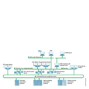 Продукты, описанные здесь (интерфейсы и инструментарий), поддерживают связь SIMATIC PCS 7, включая SIMATIC BATCH, и информационными системами предприятия: