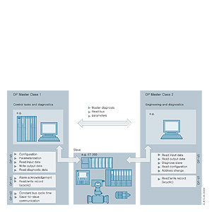 Ведущие сетевые устройства класса 1 осуществляют управление циклическим обменом данными с ведомыми сетевыми устройствами. Помимо скоростного циклического обмена данными ведущие устройства класса 1 способны поддерживать асинхронный обмен. Асинхронный обмен используется для передачи параметров настройки или результатов измерений ведомых устройств и имеет более низкий приоритет по сравнению с циклическим обменом. Функции ведущих сетевых устройств класса 1 могут выполнять программируемые контроллеры SIMATIC S7-300/S7-400, системы автоматизации SIMATIC C7, промышленные компьютеры и т.д.