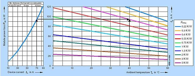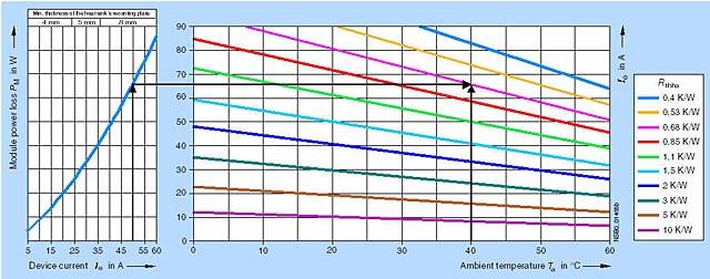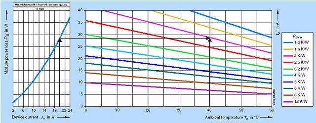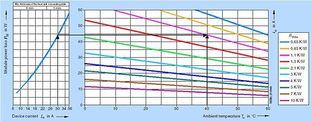При  dTha = 56 K радиатор должен поэтому иметь Rthha = 2.0 K/W.