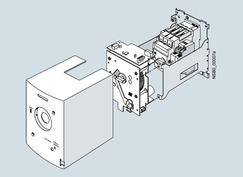 Силовые автоматические выключатели с поворотным приводом могут встраиваться в коммутационный шкаф и управляться снаружи дверным поворотным приводом.При закрывании двери коммутационного шкафа привод входит в зацепление с автоматом. Когда силовой автоматический выключатель включается, соединительный элемент осуществляет блокировку и предотвращает случайное открывание двери. Обслуживающий персонал может снять эту блокировку. В отключенном положении поворотный привод может быть предохранен от повторного включения тремя висячими замками. При этом случайное открытие двери тоже невозможно.