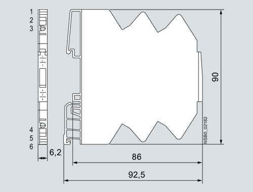 Размеры для аналогового преобразователя с 3-кратным гальваническим разделением и шири 6.2 мм