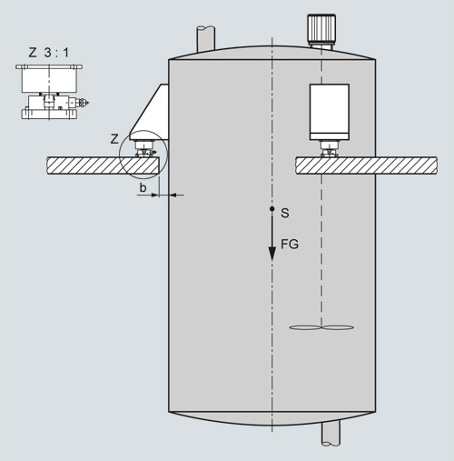 Емкость с мешалкой на весоизмерительной ячейке серии RN и эластомерной опоре