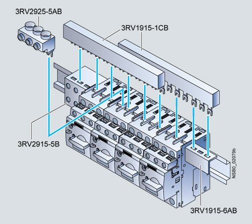Системы 3-х фазных шинок 3RV19 15 неприменимы для автоматических выключателей защиты электродвигателей с функцией реле перегрузки 3RV21, а так же для автоматических выключателей 3RV27 и 3RV28 в соотв. с UL 489 / CSA C22.2 No.5-02.