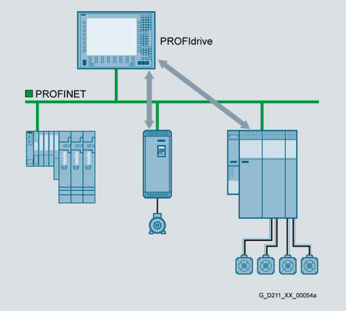 Функциональный интерфейс между контроллером и приводами SINAMICS lzk PROFINET и PROFIBUS определяется профилем привода PROFIdrive V4 PROFIBUS International. Нет необходимости в изменении программы для передачи данных между PROFIBUS и PROFINET.