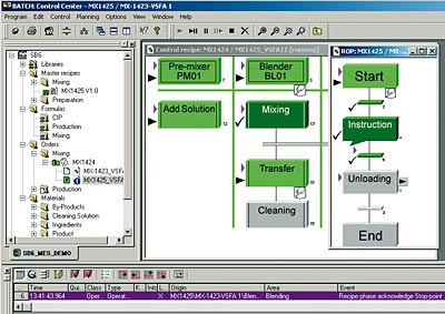The Batch Recipe Editor can be started individually, but can also be launched from the Batch Control Center (BatchCC, see below). It possesses a GUI, processing functions typical to Microsoft Windows for individual and grouped objects, and a structural syntax check.