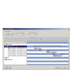 Batch planning and control are supported in a user-friendly manner and simplified, thanks to special displays such as the order category list, production order list, batch planning list, batch status list, or batch results list.