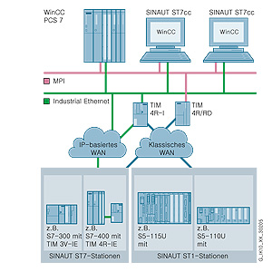 Дополнительно SINAUT ST7cc поддерживает функции центра телеуправления, что исключает необходимость выделения для этих целей отдельного центрального процессора SIMATIC S7/C7.