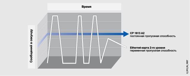 Применение различных типов коммуникационных процессоров позволяет получать различную пропускную способность данных через IndustrialEthernet.
