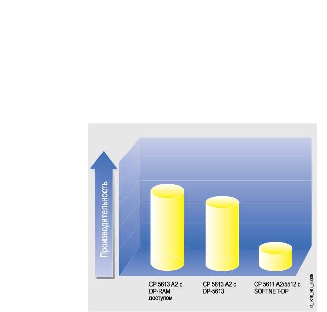 Возможности коммуникационных процессоров (CP) PROFIBUSМаксимальная пропускная способность показывает, как много телеграмм цифровых входов/выходов может быть считано и записано в или из приложения PROFIBUS в 1 ms через соответствующий коммуникационный процессор PROFIBUS-CP (независимо от физических свойств шины). Производительность разных СР при одинаковом ЦПУ