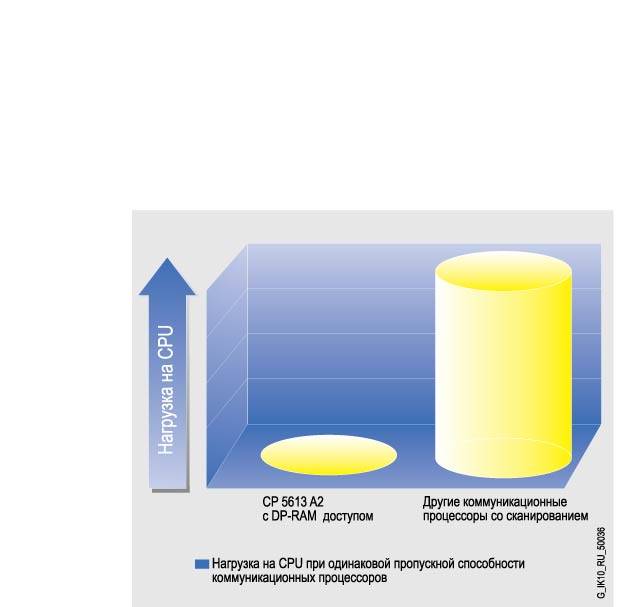 Загрузка ЦПУ и время доступаСравнения доступа по событию (через прерывание) и доступ по опросу показывают, что загрузка ЦПУ в случае CP 5613 вместе с помощью механизма событие/фильтр может быть снижена до 10% при той же самой пропускной способности. Сравнение загрузки ЦПУ