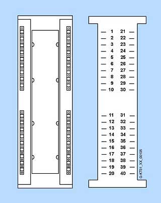 В таблице для 40-контактного аналогового штекерного модуля Вы видите соответствие гнезд клеммному блоку