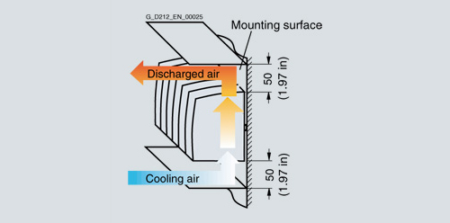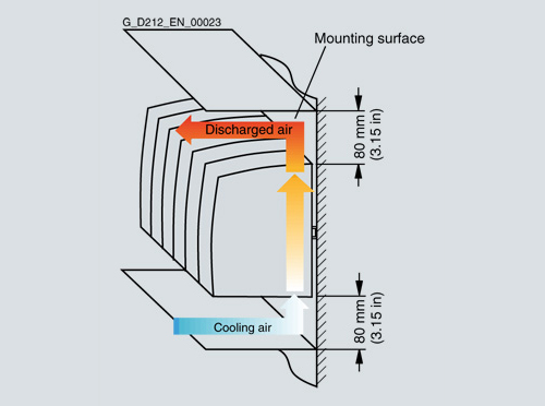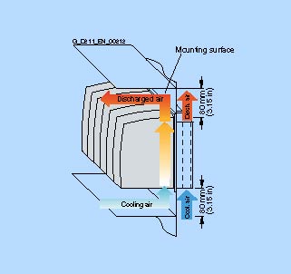 | Циркулируемый воздух в шкафу управления и нециркулируемый внешний воздух α i = 40 W/(m2 × K); αa = 6 W/(m2 × K) | приблиз. 5.2 W/(m2 × K) |