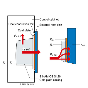 Расчет IEC 60890 (VDE 0660 Часть 507) может использоваться для определения температуры окружающей среды Tc внутри шкафа управления. При расчете следует учитывать все источники тепла в шкафу управления, например, линейные модули, модули двигателя, источники питания, фильтры, реакторы. Важно определить эффективную поверхность охлаждения, которая зависит от способа настройки шкафа управления. Для шкафов управления с вентиляционными форточками (естественная конвекция) также может использоваться стандарт.