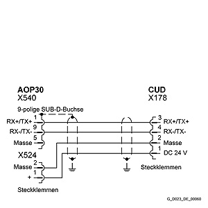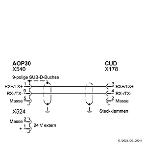 AOP30 и привод SINAMICS DC MASTER осуществляют связь через последовательный интерфейс RS485.