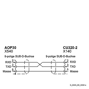 Распределение кабеля RS232 для подключения к AC SINAMICS блоку (не для SINAMICS DC MASTER!)