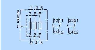 Схема подключенияСхема главной электрической цепи 3KL Для 3KL50 и 3KL51, доступен только один доп.контакт (заказывается отдельно); 4-й полюс доступен как главный контакт.