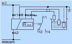 Регулирование двух уровней: выходное реле изменяет свое коммутационное состояние, как только уровень жидкости достигнет зонда максимума, в то время как зонд минимума погружен. Реле опять возвращается в исходное состояние, как только зонд минимума перестанет касаться жидкости.