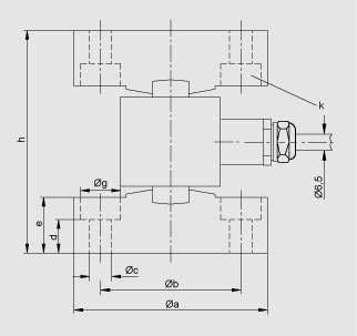 | Номинальная нагрузка | Øa | Øb ±0,1 | Øc | d | e | Øg | h | k | s |