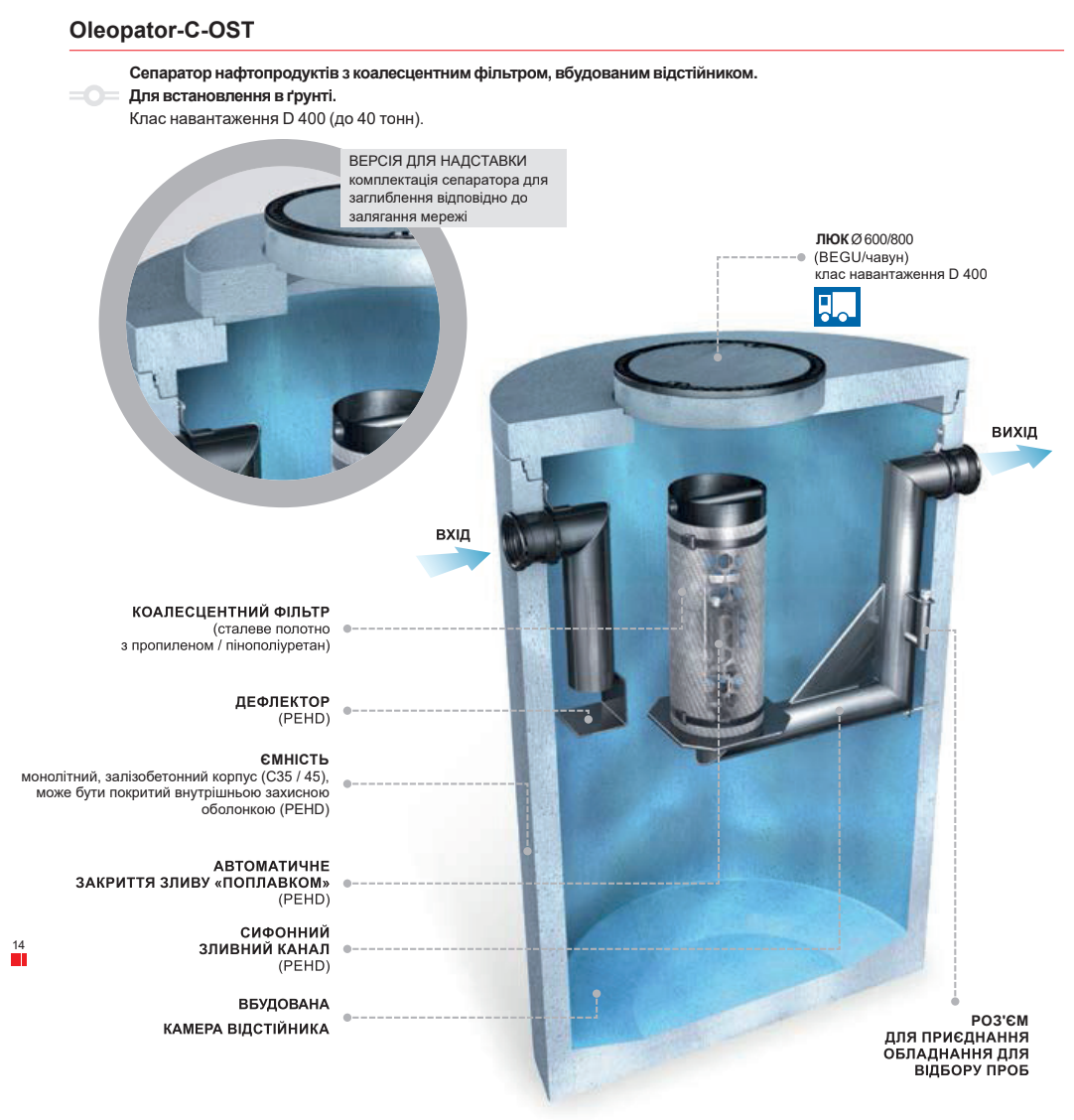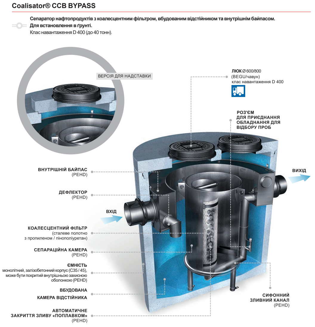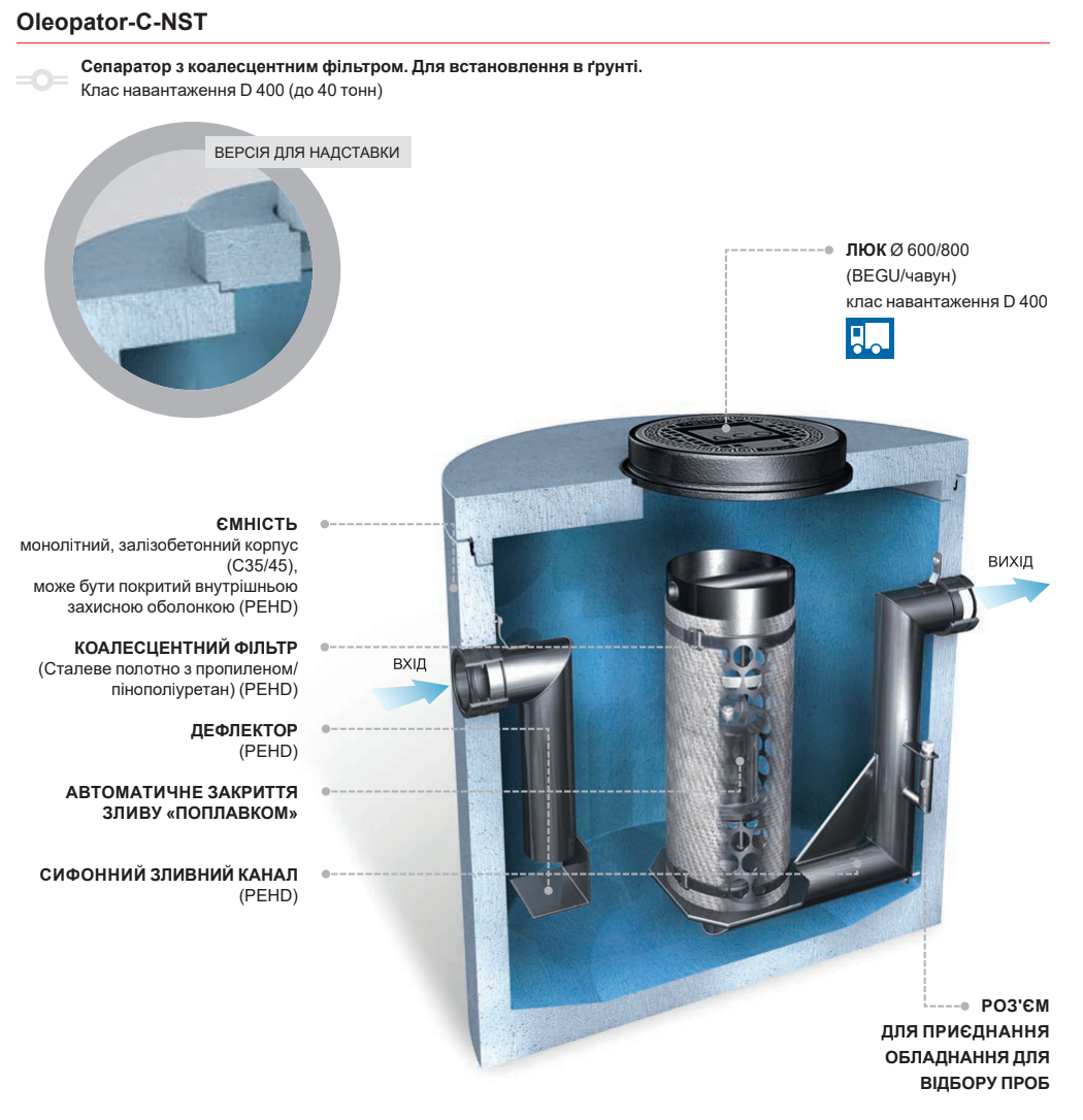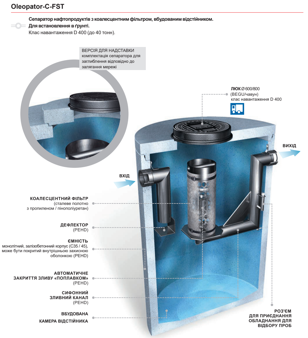с коалесцентним фильтром, предназначены для устранения нефтепродуктов, содержащихся в дождевых и технологических стоках