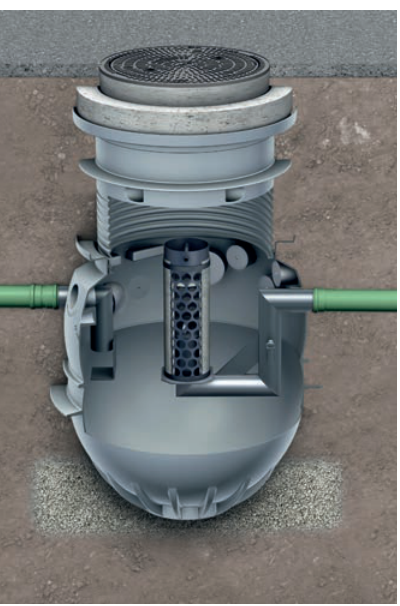 делает невозможным загрязнение канализации. Гравитационный принцип в очистных сооружениях является необходимым условием. В случае необходимости подъема уровня стоков, следует применять насосную станцию, но только после сепаратора. применять его перед сепаратором нельзя. Сепараторы типа COALISATOR®