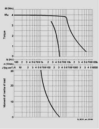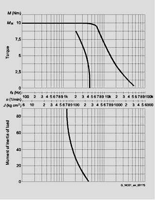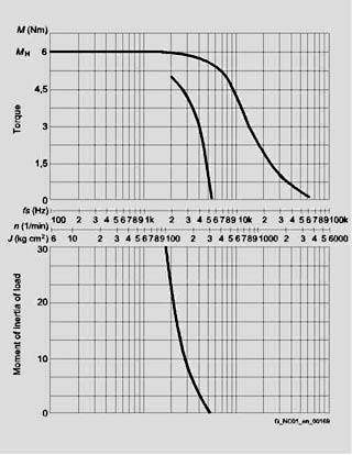 Характеристики двигателя предоставляют информацию о допустимой мощности привода и всегда относятся к скорости двигателя (об/мин).). Соответствующая управляющая частота при разрешении 1000 шагов/оборот может быть считана со шкалы "fs (Гц)". Значения шкалы "fs (Гц)" необходимо умножить на 0.5/5/10 в соответствие с разрешением в 500/5000/10000 шагов/оборот. Значения скорости двигателя (об/мин) остаются без изменения.