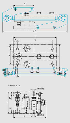 | Номинальная нагрузка | A | B | C | D | E | F | G | ØH | K | L | M |