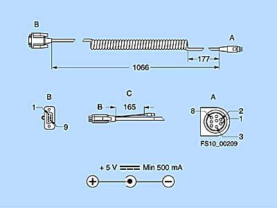 Схема подключения Кабель RS232 | Разъём A Контакт No. | Разъём B Контакт No. | Разъём C | Назначение | Толщина | Цвет | | 1 | 1 | центральный провод | V+ (5 V ±0.5 V) | 24 AWG | красный | | 2 | 2 | - | TX | 28 AWG | коричневый | | 3 | 3 | - | RX | 28 AWG | оранжевый | | 4 | - | - | не подсоединён | - | - | | 5 | - | - | не подсоединён | - | - | | 6 | - | - | не подсоединён | - | - | | 7 | - | - | не подсоединён | - | - | | 8 | 5 | кольцо | заземление | 24 AWG | чёрный | | 9 | - | - | не подсоединён | - | - | | оболочка | - | - | экранирование | - | неизолированный | Назначение контактов кабеля RS232 Кабель USB | Разъём A Контакт No. | Разъём B Контакт No. | Назначение