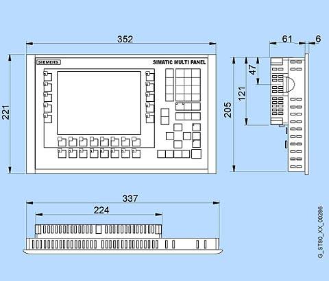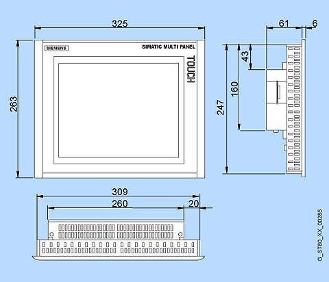 | Через MPI/PROFIBUS DP, USB, Ethernet, автоматическая идентификация процесса | Через MPI/PROFIBUS DP, USB, Ethernet, автоматическая идентификация процесса | Через MPI/PROFIBUS DP, USB, Ethernet, автоматическая идентификация процесса | Через MPI/PROFIBUS DP, USB, Ethernet, автоматическая идентификация процесса | | Габариты | | | | | | Фронтальная панель | 240 x 180 мм | 325 x 263 мм | 352 x 221 мм | 483 x 310 мм | | Монтажный проем/ глубина | 226 x 166 мм/ 60 мм | 310 x 248 мм/ 61 мм | 338 x 206 мм/ 61 мм | 434 x 291 мм/ 60 мм | | Масса | | | | | | Масса | 1.61 кг | 2.65 кг | 2.25 кг | 4.95 кг | |