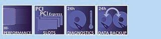 - Графическая карта PCI Express x16, (Dual Head: 2 x VGA or 2 x DVI), 128 Mбайт, до 2048 x 1536 точек, 75 Гц, 32-разрядная цветовая палитра