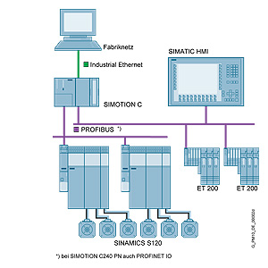 К коммуникации с цифровыми приводами SIMOTION C поддерживает PROFIBUS-DP с тактовой синхронизацией.