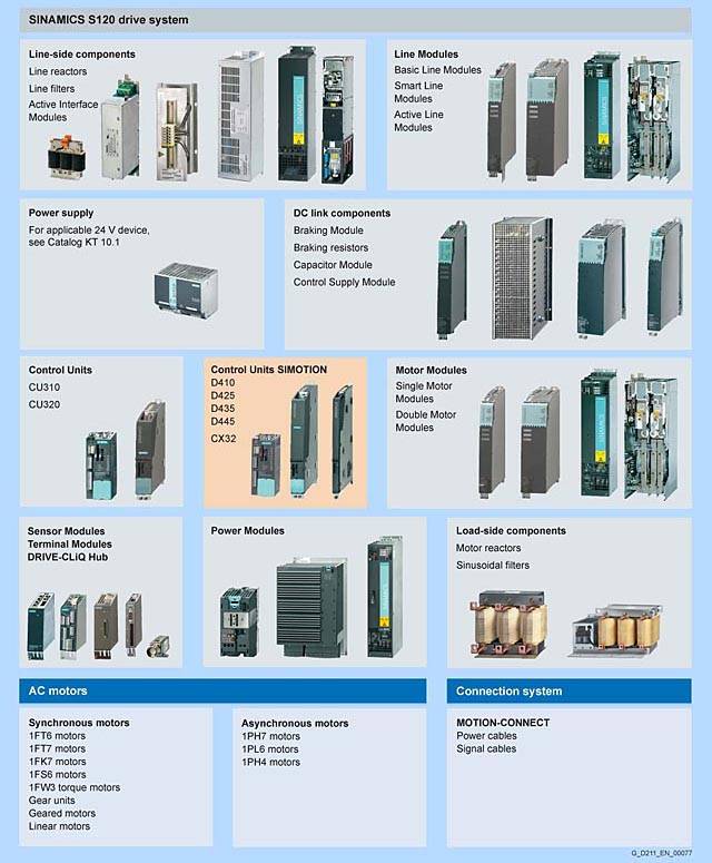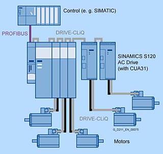 SINAMICS S120 и SIMOTION – отличная комбинацияСовременные устройства должны поддерживать обработку даже более сложных задач контроля движения и выполнять эти задачи с высоким уровнем производительности и точности. Это требование отлично удовлетворяет "команда" из Системы контроля движения SIMOTION и высокопроизводительная система приводов SINAMICS S120, Вариант SIMOTION D, физически интегрированный в привод SINAMICS S120, является идеальным решением для устройств с большим количеством осей и жесткими требованиями к уровню точности. Эта распределенная структура автоматизации позволяет устройству выполнить сегментацию на различные группировки осей, при этом каждая группировка контролируется отдельной системой контроля движения SIMOTION. Связь с системой SIMOTION осуществляется с помощью PROFIBUS DP или PROFINET. Еще один важный аспект: компактные габариты устройства благодаря распределенной структуре автоматизации и блоку управления прямо на приводе.
