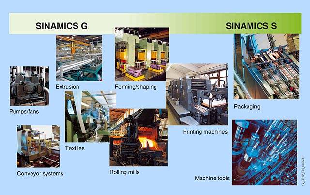 Область примененияSINAMICS - это новое поколение преобразователей частоты фирмы Siemens для промышленного применения. SINAMICS предлагают решения для: