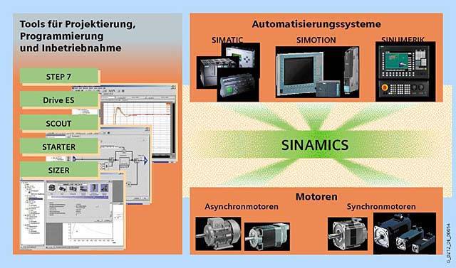 Концепция платформы и Комплексное Решение для АвтоматизацииВсе версии SINAMICS базируются на единой платформе. Единые аппаратные и программные компоненты, также как и стандартизованные средства для разработки, конфигурирования и наладки обеспечивают высокий уровень интеграции всех компонентов. SINAMICS поддерживает широкий спектр задач электропривода без проблем. При этом разные версии SINAMICS могут быть легко скомбинированы друг с другом. Кроме того, SINAMICS - это часть программы Siemens "Комплексное Решение для Автоматизации". Интегрированные системы SINAMICS включают конфигурирование, хранение данных и информационный обмен на уровне автоматизации, обеспечивая дешёвые в эксплуатации решения с SIMATIC, SIMOTION, и SINUMERIK.