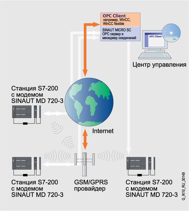 • OPC сервер, использующий GPRS соединения для подключения к центру управления до 256 контроллеров SIMATIC S7-200