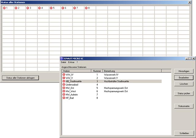 - табличного обзора состояний всех соединений со всеми станциями