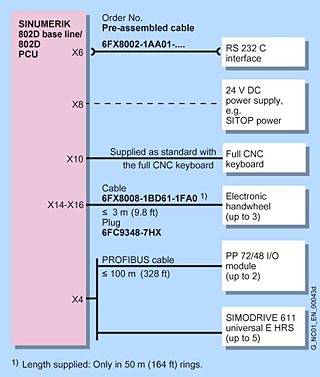 ИнтеграцияК SINUMERIK 802D base line можно подключить следующие компоненты: - До 3 электронных маховиков