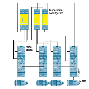 Motors up to 3 kW can easily be integrated into the safety relay system using SIRIUS 3ZY1 device connectors, without having to run a cable between the evaluation unit and the motor starter.