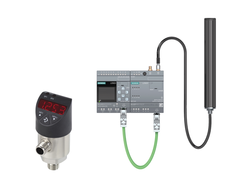 На контролируемый трубопровод устанавливается датчик давления с индикацией действующего значения давления. Данный датчик параметризируется таким способом, что при снижении давления ниже критического, срабатывает реле прибора. Датчик давления подключен к контактам приему/передачи данных оборудования Siemens. При снижении давления ниже критического контроллер включает свето-звуковой сигнализатор и одновременно отсылает смс сообщение на мобильный телефон.