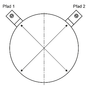 В стандартных системах FUS, FUP, FUE эти каналы могут устанавливаться на отдельные независимые линии или вмноголучевой установке, показанной ниже. Этот выбор выполняется при настройке измерительного прибора, и может быть выбрана либо многолучевая (два луча в одной трубе) или многоканальная установка.